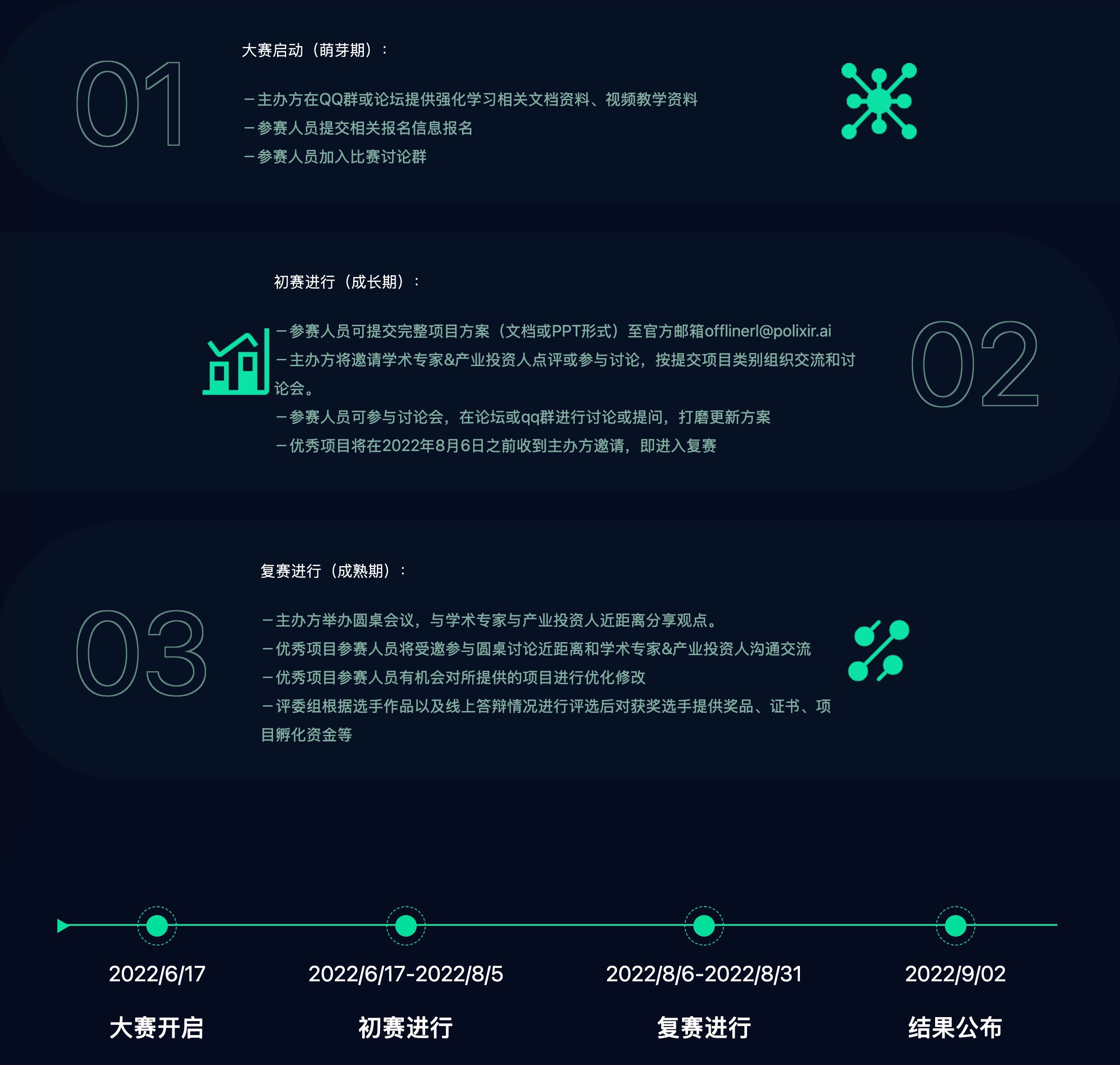 ,旨在发现优秀科技人才,培育优质科技项目。大赛鼓励创新,挑战未知的不可能,激发强化学习应用灵感,释放个人创造力。现诚挚邀请各位专家/技术大咖,以您敏锐的专业洞察力,发掘各行业场景可以提升的技术空间,在这个时代弯道超车,重新分配价值,共同创领商业蓝海!